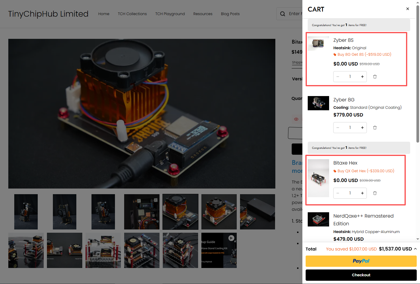 2.The Zyber 8S Original/Bitaxe Hex/Bitaxe Gamma Standard in your cart will automatically show as FREE !