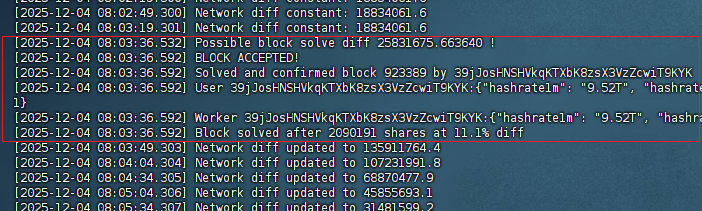 Laut dem Bitcoin.com-Pool-Bericht 2023 ist der durchschnittliche theoretische Zyklus zum erfolgreichen Schürfen eines Blocks im Solo-Modus extrem lang und anspruchsvoll hinsichtlich der Hashrate. Aber genau das ist die Quelle des Nervenkitzels. Jedes Mal, wenn Ihr Gerät läuft, drückt es direkt diesen Lotterieknopf, anstatt auf einen Trostpreis vom Pool zu warten. Obwohl dies auf der XEC-Chain geschah, teilt ihr Konsensmechanismus den gleichen Ursprung wie BTC. Dieser Treffer entspricht einer perfekten Live-Feuer-Übung, die die Stabilität des Protokollstapels des Geräts und sein Blockproduktionspotenzial beweist.